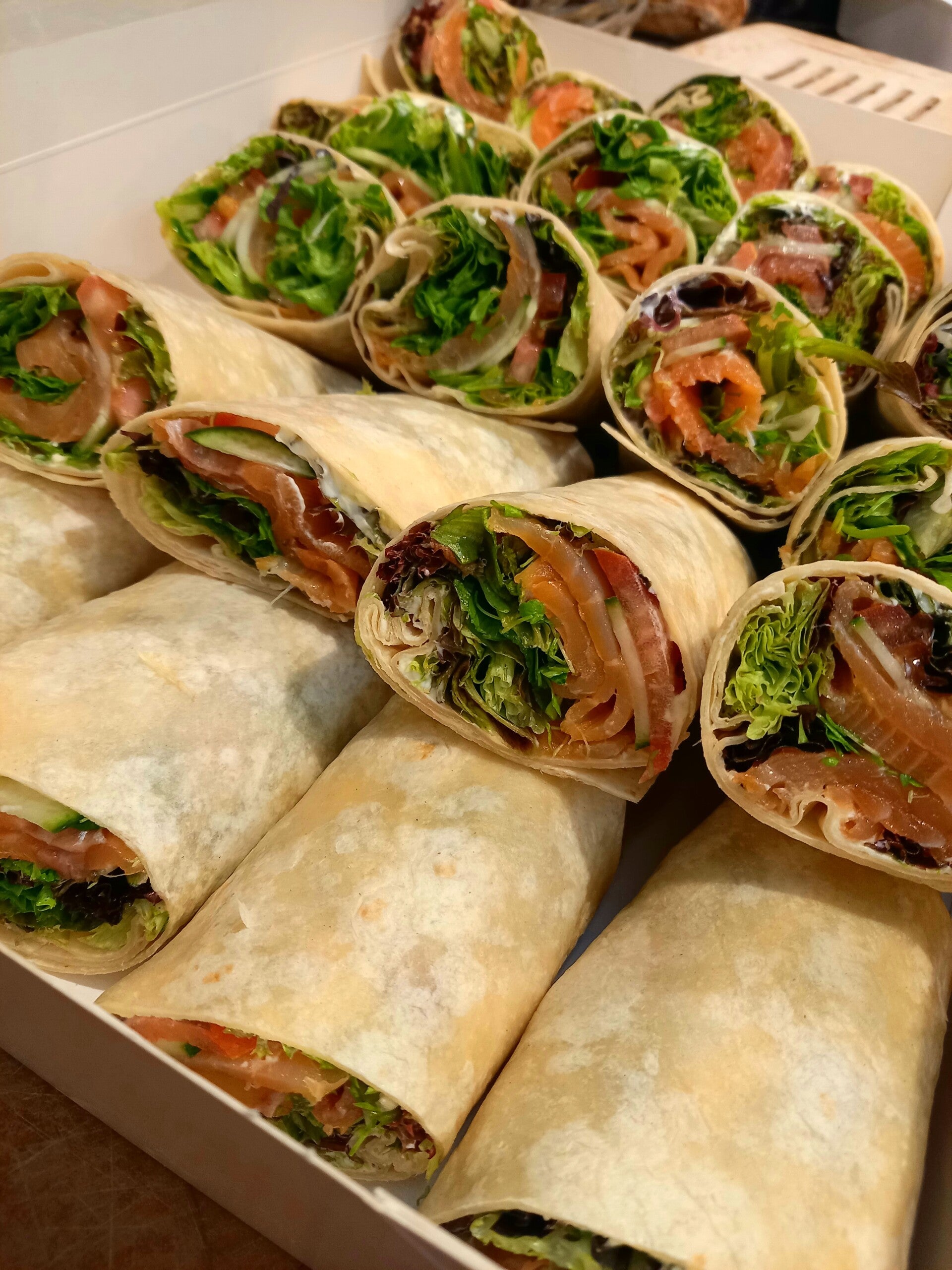 Wraps met huisgerookte zalm, guacamolé en tuinkers