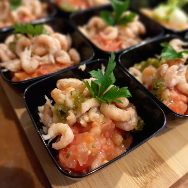-2x Grijze Noordzee garnalen met tartaar van tomaat, basilicum dressing